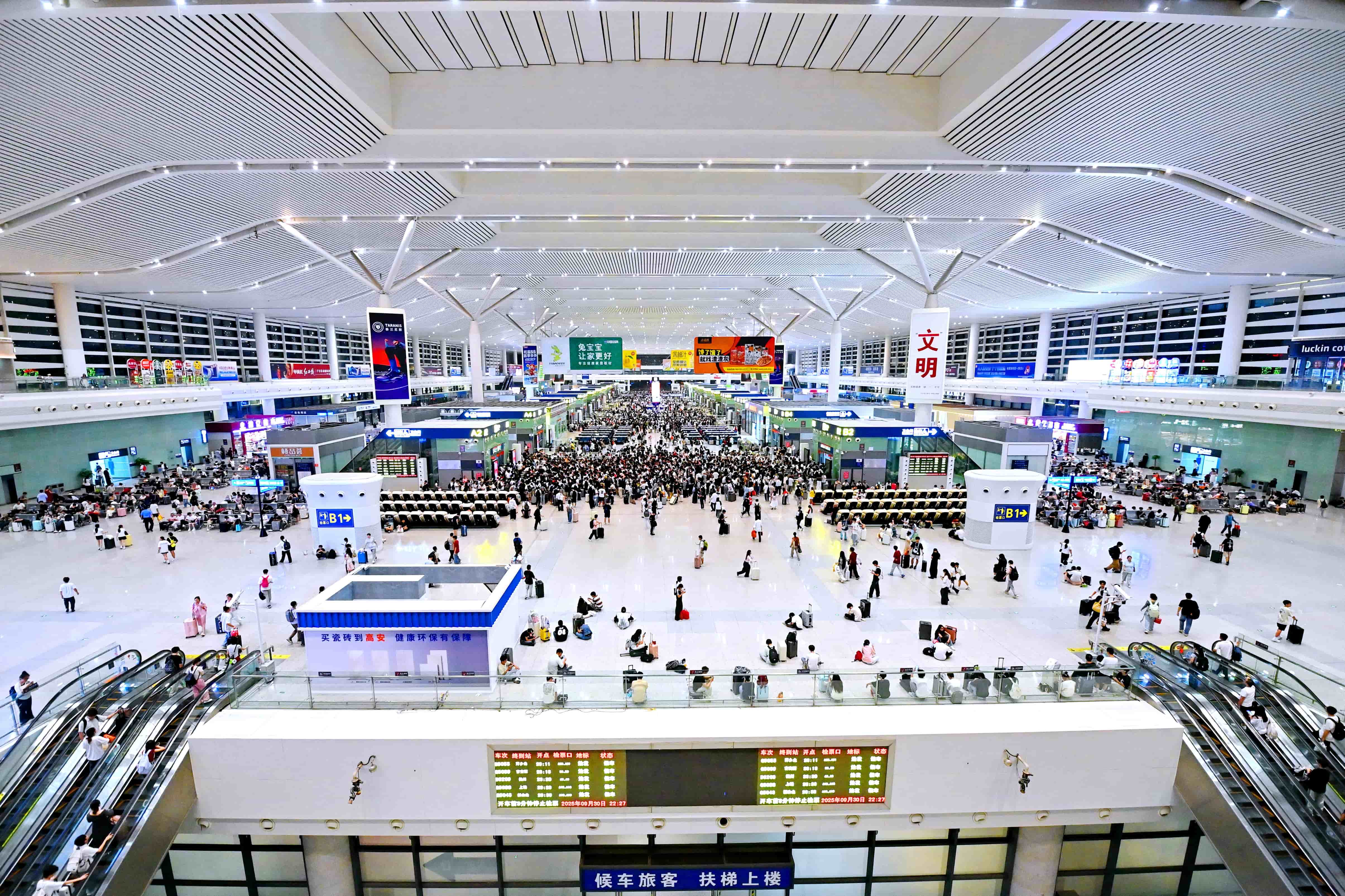 9月30日晚,人流如织的南昌西站候车大厅。人民网 朱海鹏摄