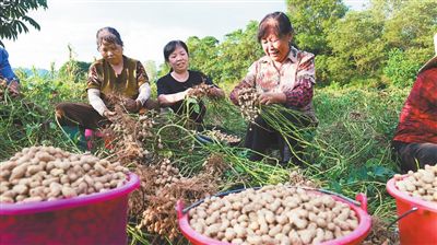 村民在采收翻秋花生。记者 蔡颖辉摄
