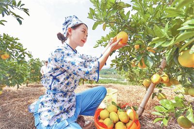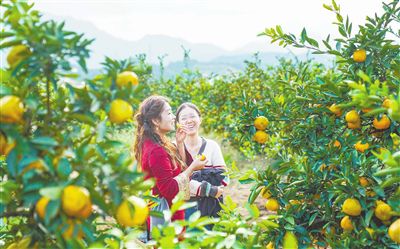 10月25日,九江市庐山西海易家河蜜橘进入丰收季,果园内金黄果实挂满枝头,吸引游客前来采摘品尝。本报全媒体记者 梁振堂摄