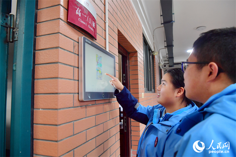 作为高一年级的政治老师,周艳丽说,学生们都非常喜欢观看电子屏里人民网的各类信息,它涵盖了国家政策解读、时政要闻、科技发展等重要的内容,大大拓宽了学生们的视野,让大家不仅能够读好圣贤书,也能知国家事、天下事。“人民网作为主流媒体,通过对各类信息的权威解读,正确引导学生们理性看待各类新闻事件,培养正确的网络素养和理性思维思辨能力,提高学生们的思辨能力。”周艳丽认为,一方小小电子屏,让学校走廊成为隐形的教育课堂,不仅仅丰富了同学们的课余生活,也实现了环境育人的功能。