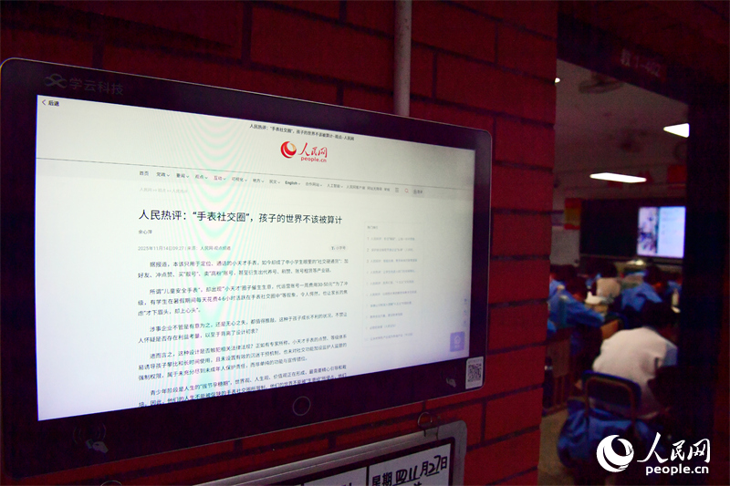 这并非学校刻意的安排,而是一次用心的环境营造。“从高一到高三,每个班级门口都安装了这样的电子屏,近50块的电子屏默认界面便是权威媒体人民网。”南昌二中政教处主任熊琪介绍,起初,它只是安静地矗立在那里,像一块高级公告栏,但不知不觉间,它成了学生们课后的“热门打卡点”。“人民网给我们的课间带来了深刻的变化,我们经常可以看到师生围在电子屏前讨论某件国家大事,并且对一些时政要闻进行点评。”熊琪说,老师在上课之前也可以利用人民网的内容做非常好的课前准备。
