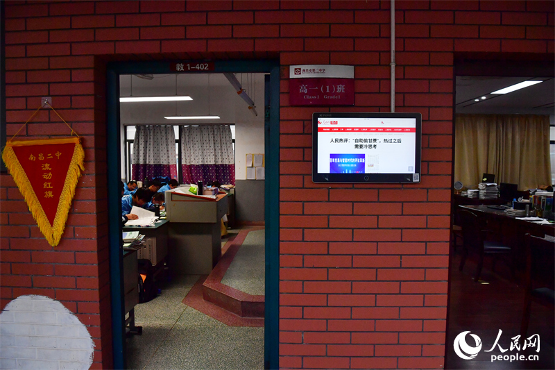 南昌二中从高一到高三每个班级门口安装的电子屏默认界面是人民网。人民网记者 时雨摄