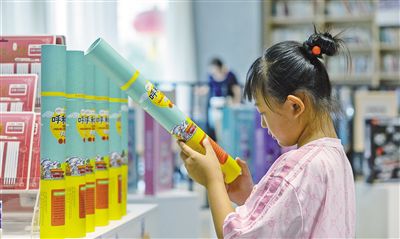小朋友在鸿雁书房挑选文创。