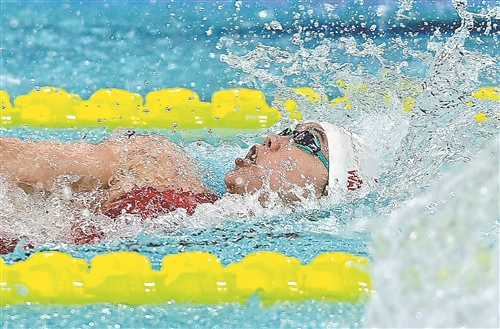 作为备受关注的冲金选手,万乐天在决赛中被分在第四泳道。本次参赛的8名选手均是国内仰泳项目的顶尖强手,个人最好成绩相差甚微,竞争从一开始就进入白热化。发令枪响后,全体选手如离弦之箭跃入水中,划水、推进动作一气呵成,泳池内浪花飞溅,选手们齐头并进,前40米的赛程始终难分伯仲,场边观众的呐喊助威声此起彼伏。