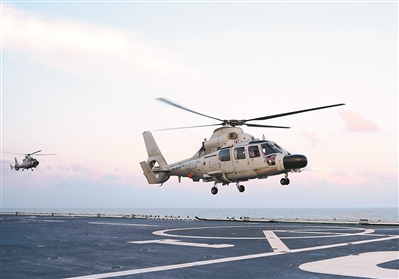 近日,海军某支队开展舰载直升机起降训练。唐浩然摄