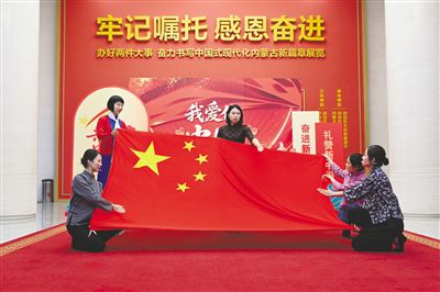 9月28日,内蒙古展览馆工作人员沉浸式表演《绣红旗》。当日,内蒙古展览馆开展了“礼赞七十六载·共庆家国团圆”国庆主题系列活动。活动通过升国旗仪式、沉浸式演出、主题打卡、红歌快闪等多元形式,营造了热烈喜庆的节日氛围,吸引了众多市民参与。记者 白雪摄