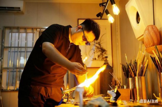 今年6月,中国国家博物馆“琉光璃彩——淄博琉璃艺术展”上,孙启烨创作的《琉璃凤冠》一亮相便火爆全网。出圈之后,孙启烨一次次找到多位琉璃大师,上门求教。从铸造时的材料配比,到吹制时的技巧,再到灯工造型的镊子角度控制,他都反复请教、仔细记录,并在反复练习中沉淀手艺。