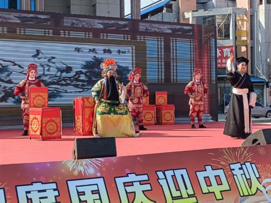 为让群众过个有滋有味的“双节”假期,9月29日至10月2日,曹县在南湖人民广场办起“迎国庆·悦中秋”黄河大集文化艺术品交流会暨文化旅游消费月文艺演出。以往在剧院里上演的“一元大戏”,特意搬到了广场中央,让群众在家门口就能过足戏瘾。