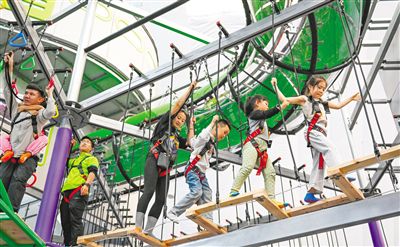 10月5日,家长陪伴孩子开心玩耍。当日,呼和浩特市大黑河军事主题公园人流如织,“逐光原野运动乐园”凭借寓教于乐的亲子游项目,吸引众多家庭前来游玩,日均接待游客近3000人,成为青城文旅活动矩阵中极具特色的亲子打卡地。记者 王磊摄