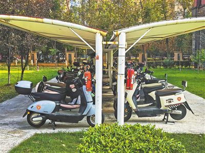 南昌的小区增设了不少电动自行车停车充电设施。记者 徐黎明摄