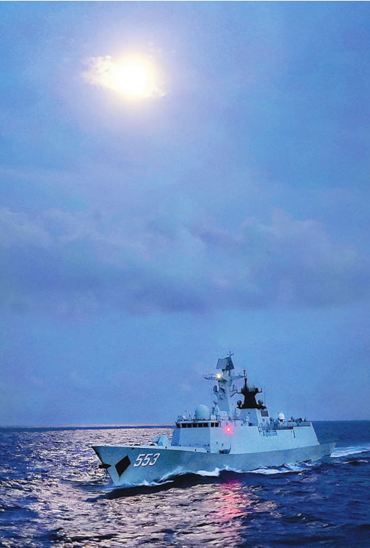 秋日,海军某支队开展夜间海上训练。 余传军摄