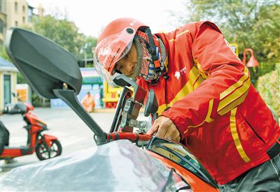 快递员用“青蜂舍”提供的工具包检修车辆。