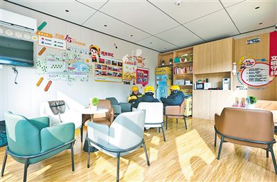 “青蜂舍”的价值,远不止于为新就业群体提供歇脚、补给的场所。一角的学习充电空间里,他们可以在忙碌之余翻看书籍、学习政策。“这里不仅是他们歇脚放松的‘避风港’,更是助力成长的‘加油站’,还能满足大家开晨会、开展小型团建的需求。”呼伦贝尔北路街道党工委副书记何国俊介绍。