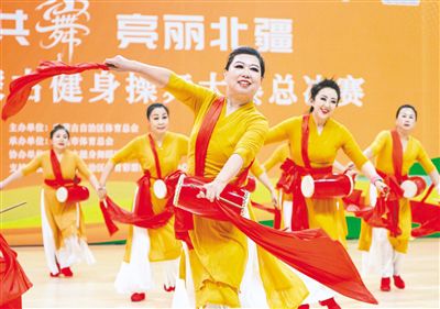 11月29日,参赛队伍正在进行比赛。当日,“全民共舞 亮丽北疆”2025年内蒙古健身操舞大赛总决赛在呼和浩特举行,来自巴彦淖尔、包头、呼和浩特、通辽等盟市基层健身指导站的17支队伍近400名健身操舞爱好者同场竞技。记者 孟和朝鲁摄