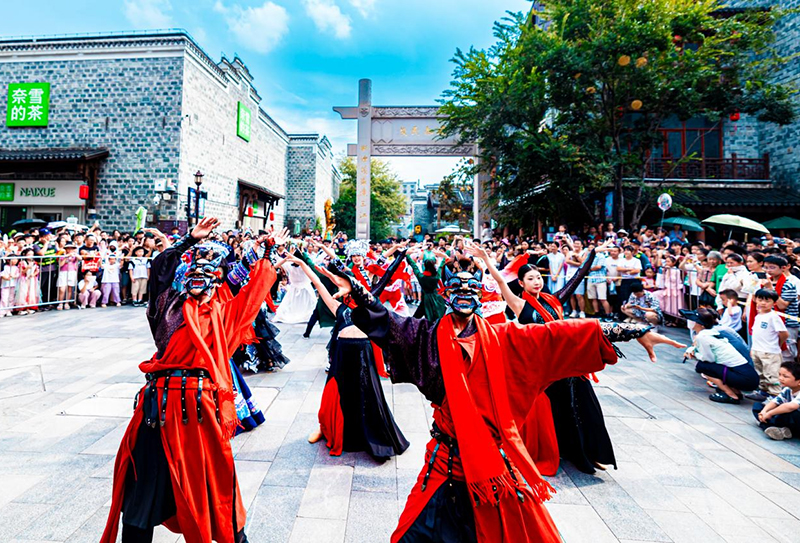 在万寿宫历史文化街区,大型原创沉浸式歌舞剧《天下万寿》连演8天。陶昱良摄