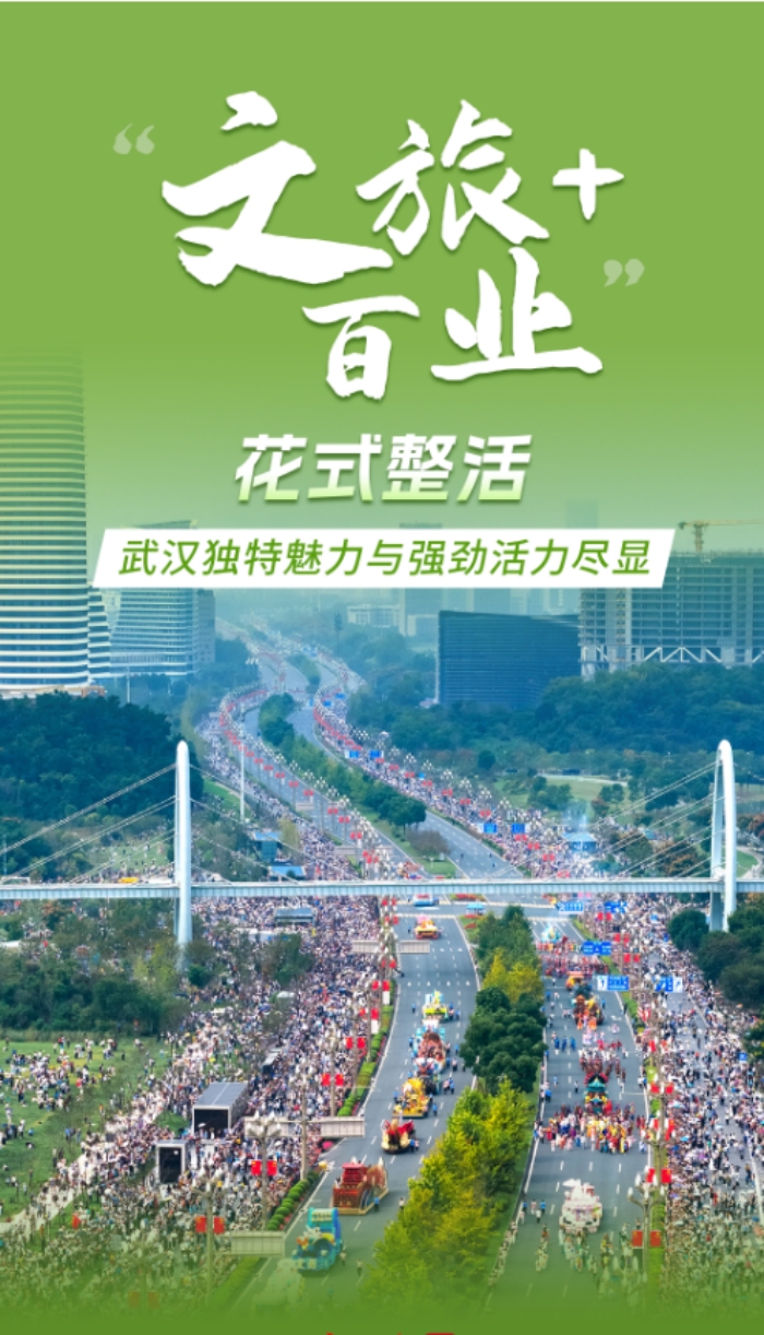 “河山添锦绣——文旅IP武汉城市大巡游”于10月1日在武汉光谷开游,23台主题花车,融合全国各地特色民俗、非遗项目的38家国内外顶尖演艺团队联袂献艺,近10万市民游客现场观看,来鄂游客大呼“来得值”。