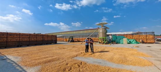 履带式收割机收完玉米后直接脱粒,这些玉米粒在阴雨天里不能晾晒,如果不及时烘干,很快就会霉变。刘一飞和王振一方面通过网络联系河南、安徽、河北等地,另一方面赶赴潍坊、德州、济宁寻找烘干设备。