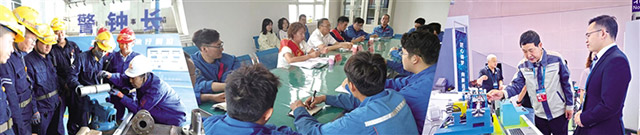 自治区总工会“劳模工匠助企行”活动中,大国工匠卢仁峰和产业工人进行技术交流。 劳模先进代表深入基层宣讲。 第三届大国工匠创新交流大会上,国家科技进步奖二等奖获得者郭晋龙(中)介绍创新成果。