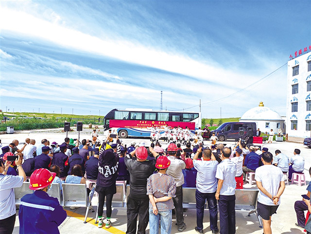 自治区总工会北疆职工乌兰牧骑走进四子王旗,为一线矿业工人慰问演出。