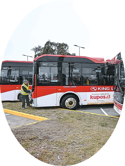 在智利科皮亚波拍摄的中国生产的新能源公交车。 |