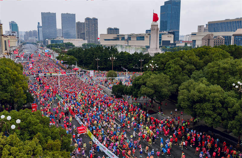 三万余名跑者在南昌八一广场集结,用脚步丈量城市之美。 2025南昌马拉松组委会供图