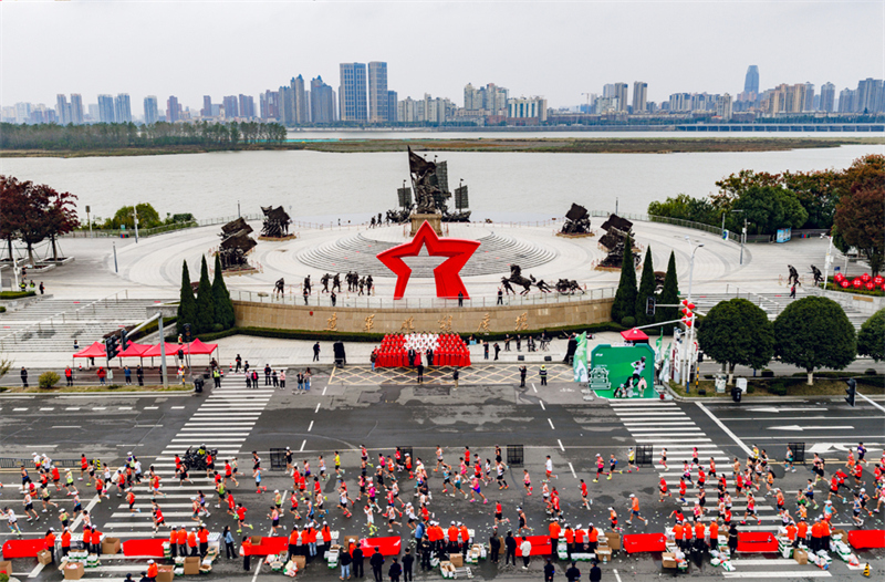 跑者经过建军雕塑广场。2025南昌马拉松组委会供图