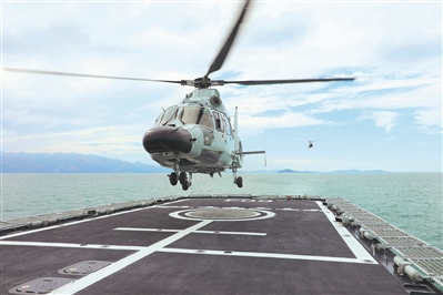日前,海军某支队组织海上训练。图为舰机协同训练。本报特约通讯员 王光杰摄